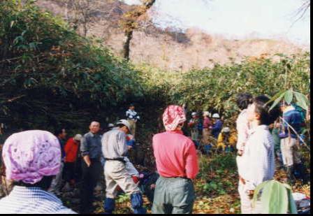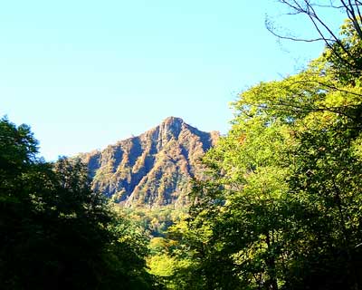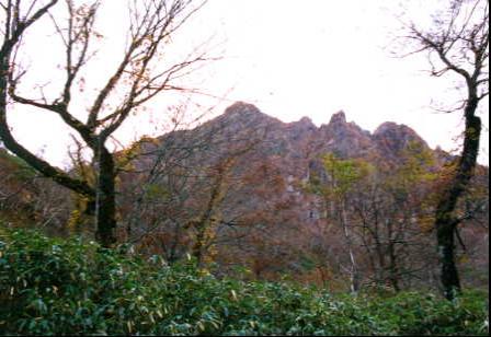 今回は、山のベテランの方々のお尻を付いていったので事なきを得たが、1人なら絶対迷っていたであろう。同じ道南地区のメンバーが八月に偵察に訪れていて、ワイルドさは予想していたが、このワイルドさは予想以上である。沢をしばらく登り続け、やがて大きく右折して山肌に続く急坂を登る。曲がり角には沢山の赤リボンが付いているが、下を見て歩いていると思わずまっすぐに、進んでしまいそうで要注意である。しばらく、笹に囲まれた登りを進むと、雄鉾岳の急峻な大岸壁が見えてくる。いくら迂回するとはいえ、あの急峻な岩隗の頂上に立てるのだろうかと、少々不安がよぎる。 岩隗の下の水場で、これからの急峻な登りに備えて休息をとる。水場は、きちんと汚染されないようにパイプが設置してあり、安心して水を補給出来る。