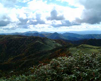 頂上は意外に広く、30人のメンバーが思い思いの所に陣取り、山頂ビールで盛り上がっていたり、早速山頂ラーメンの調理にとりかかっているメンバーで賑やかな山頂となっていた。山頂で全員で記念写真を取りる。頂上からは、渡島半島を挟んで噴火湾、日本海の両方が見渡せ、快晴の天気と相まって最高の景色を堪能することが出来た。|