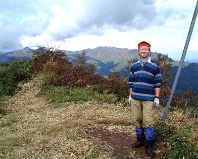 一緒にしんがりを努めていたのりさんに先に行ってくれるように御願いし、しばらく小休止して、足の回復を待つ。10分ほど両足のマッサージを続けた結果、何とか歩けるようになり、第2のルンゼを登り、ようやく海見平へたどり着く。頂上へ続く道には他のメンバーの長い列が遠くに見えている。心配して様子を見ながら待っていてくれたのりさんとNさんに大きく手を振って無事なことを告げ、頂上への最後の登りをゆっくりと登り切り、少し遅れての頂上到着となった。